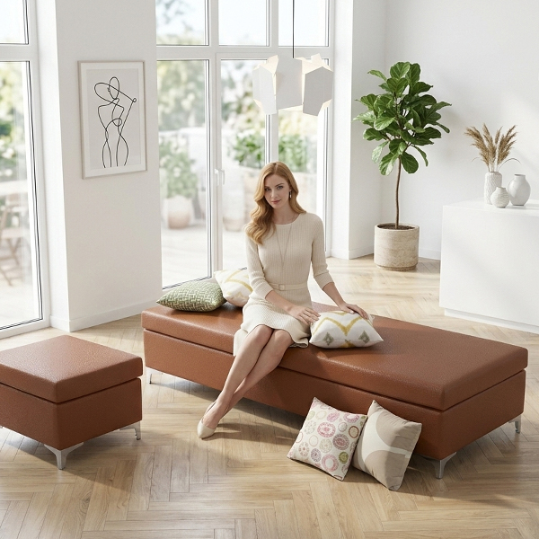 - [더젠] 레토2320 평상형 베드겸용 소파세트(사각스툴포함)/침대/롱베드벤츠/소파베드/소파/원룸/휴게실/인조가죽/레자