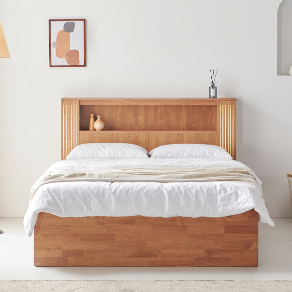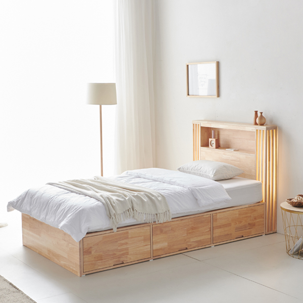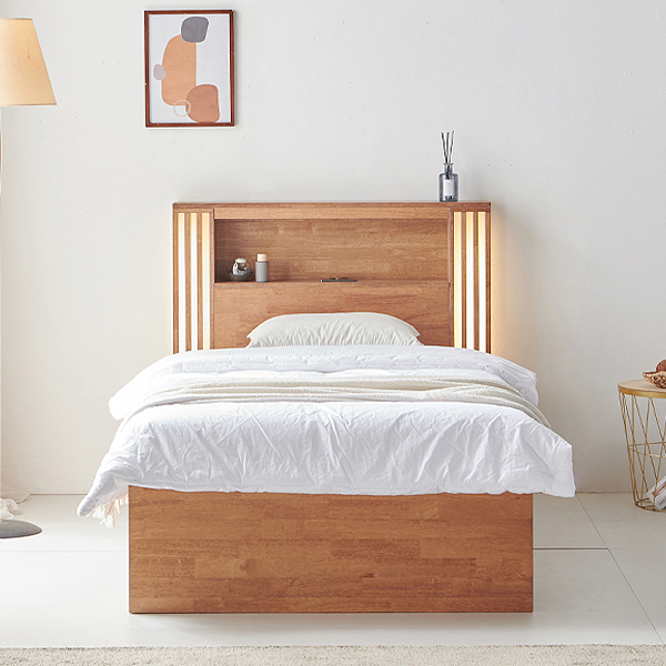 - [더젠] 네스 LED 고무나무 슈퍼싱글 수납 원목침대(매트별매)