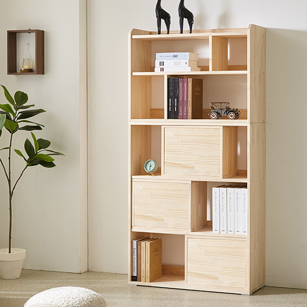 - [더젠] 르뎀800 소나무원목 높은책장(오픈공간박스 3개포함)