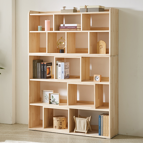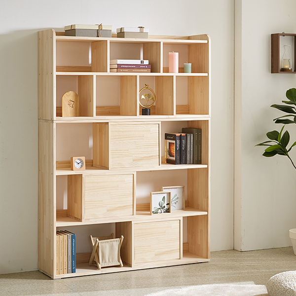 - [더젠] 르뎀1200 소나무원목 키큰책장세트(1200높은책장,1200낮은책장,오픈공간박스 3개포함)